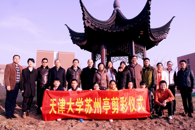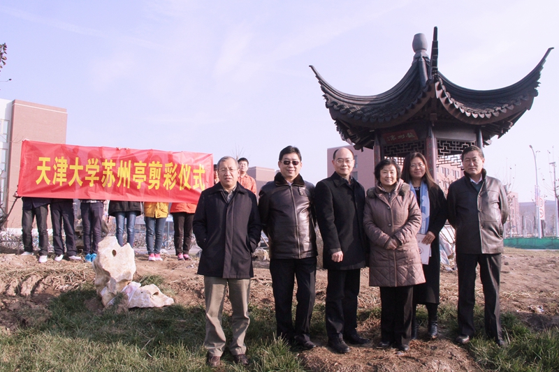 12月6日,苏州亭落成仪式举行,天津大学副校长、校友总会副会长兼秘书长冯亚青,太仓市委副书记张彪校友、苏州校友会会长李云林共同为苏州亭剪彩。校友与基金事务处处长李秀民主持仪式。