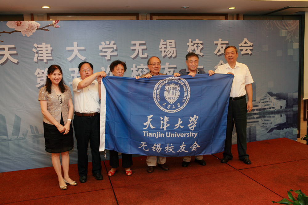 本站讯7月5日,天津大学无锡校友会第五次校友大会暨理事增选大会隆重召开,校党委副书记、校友总会副会长汪曣应邀出席大会、看望校友,带去母校教育事业发展的最新资讯和学校领导师生们的亲切问候,代表校友总会向无锡校友会授予会旗。天津大学江苏招生组、校友与基金处、内燃机重点实验室等单位负责人陪同赴会。江苏、上海、苏州、常州等地校友会会长(秘书长)专程到会祝贺。无锡校友会老会长徐仁杰、彭淑明、张德恩等近百位校友共襄盛会,其中有1962年毕业的老学长,也有2015年毕业的新校友,大家共同回忆在母校天津大学的美好时光,共同祝愿母校双甲子再创辉煌!