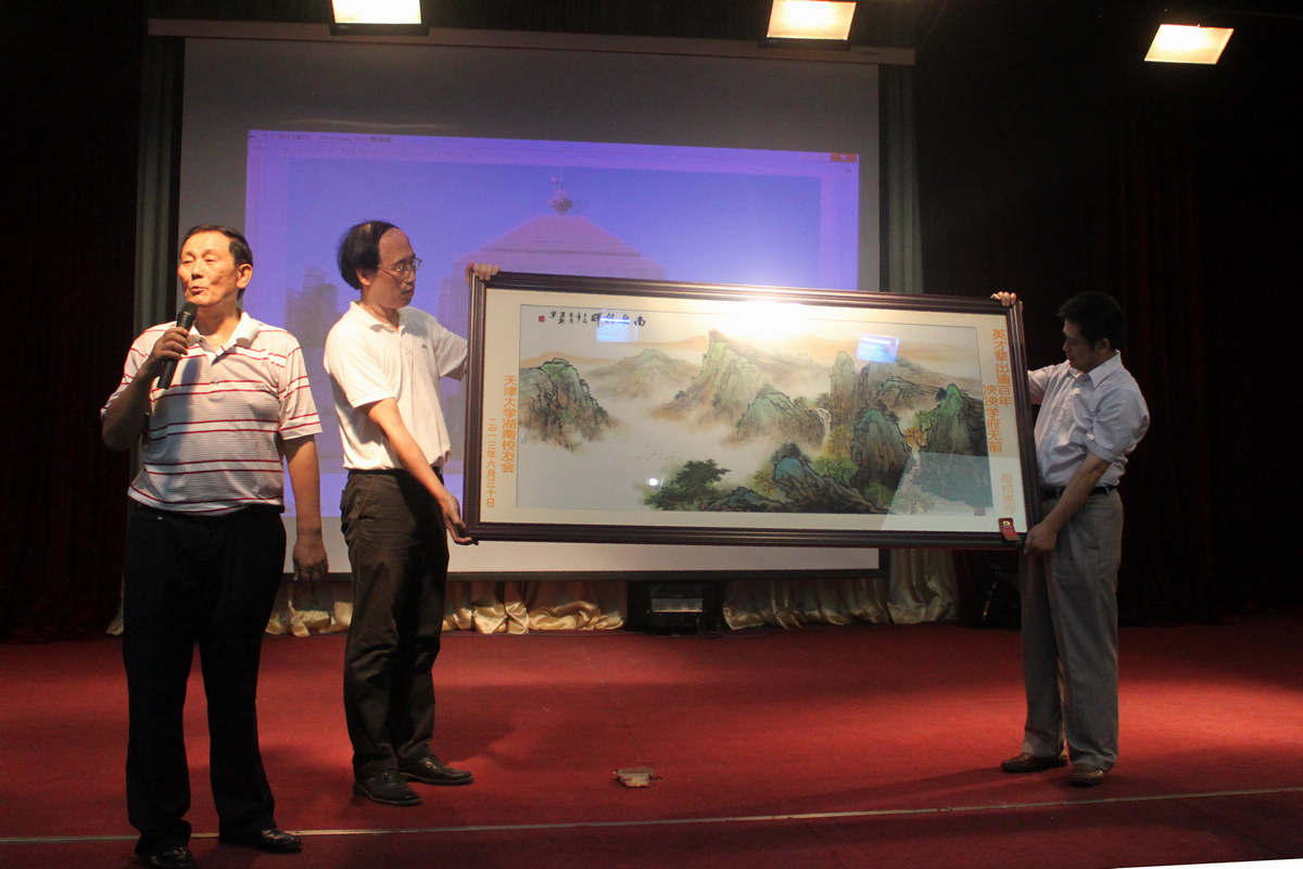 在萨克斯独奏《回家》萦绕的联欢活动中,冯亚青发表了热情洋溢的祝辞,湖南校友会副会长曾杨、罗建雄代表湖南校友向母校赠送了《南岳朝晖》的巨幅湘绣匾额,并附上叶建南校友和天津大学原校长龚克《寄调西江月到长沙》词《寄调西江月回津园》中的一句“英才辈出逾百年,泱泱学府无前”,表达“芙蓉国里尽朝晖”里的学子们对母校的深深祝福。华自科技股份有限公司的员工表演了地方特色的迎宾舞蹈《刘海砍樵》,赢得师生们的阵阵掌声。校友代表、北洋艺术团独唱歌手杨毅、秦晋分别演唱了《父亲的草原母亲的河》和《思念》,表达了他们对母校的思念、对校友的思念、对家乡的思念。抽奖环节调动了校友们的激情,使午宴达到高潮,在一片歌声、笑声中校友们畅所欲言,共话友情。