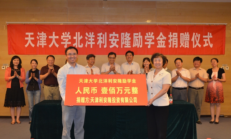 天津利安隆投资有限公司捐资壹佰万元人民币设立“天津大学北洋利安隆励学金”,对我校化工、材料、环境、经管、理学院(部)中的品学兼优的贫困本科生进行奖励,奖励额度为每人1万元整。