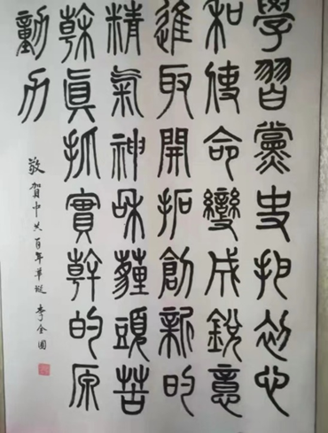 讲述的过程中,李老还提到,除了集邮,他还爱好书法,他的篆书和隶书或端庄雄秀、神韵超逸,或瘦劲清峻、朴茂工稳。