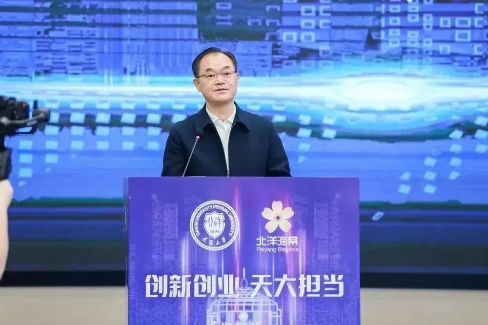 随后,北洋海棠基金发起合伙人、九安医疗董事长刘毅以“为天开高教科技园贡献天大力量”为主题,就本届创赛和天大创新创业生态的目标进行了详细介绍。他表示,未来的竞争是人才的竞争、科技的竞争、创新的竞争、创业的竞争,要通过生态建设让更多青年学子留津干事创业,吸引更多成功的校友企业家回津发展,这是天大创新创业生态一直在思考和努力实现的目标。天开高教科技园要快速发展成功的最关键因素是政府引导、政策配套、市场化运营,配资形成不同阶段的创投基金群,发挥基金在筹集资金、发现项目、培育顼目、招引项目、推动创新、分散风险等方面重大的作用。天大创新创业生态将始终以推动科技成果转化、促进创新创业为核心,为天开高教科技园和天津市的高质量发展贡献力量。