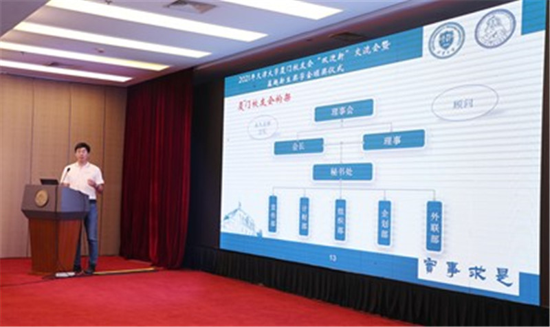 厦门校友会秘书长李水荣介绍了厦门校友会的历史、活动情况、发展规划,并且从学科建设成果、人才培育情况等方面介绍了天津大学的发展历程和卓越成就。