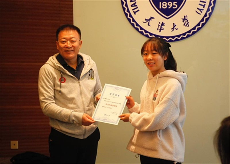 活动中,校友与基金事务处处长潘峰介绍了6年来天津大学在上海的招生工作,并与上海校友会秘书长赵莉莉共同签署了2021年度天大大成奖学金捐赠协议。郑柏存为2021级新生一一颁发奖学金。
