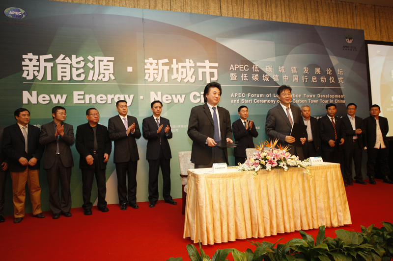 “新能源 新城市——APEC低碳城镇发展论坛暨低碳城镇中国行启动仪式”由亚太经济合作组织、国家能源局、天津市发展和改革委员会主办,天津大学、天津新金融投资有限责任公司承办,中国可再生能源学会、中国建筑学会、中国城市规划协会、天津市外事办公室、天津市科学技术委员会、天津市可再生能源学会协办,北京博地澜屋建筑规划设计有限公司、北京宝贵石艺科技有限公司支持,天津大学低碳建筑国际研究中心、天津大学建筑学院《城市 环境 设计》(UED)杂志社执行。(朱宝琳 报道 王建泽 摄影)
