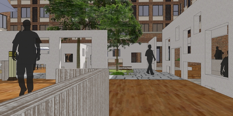 传统的学生宿舍采用行列式布局,空间特征生硬呆板。宿舍区为学生所提供的场所仅限于住宿功能,在这样场所中学生课外生活变得单一,缺乏活力。