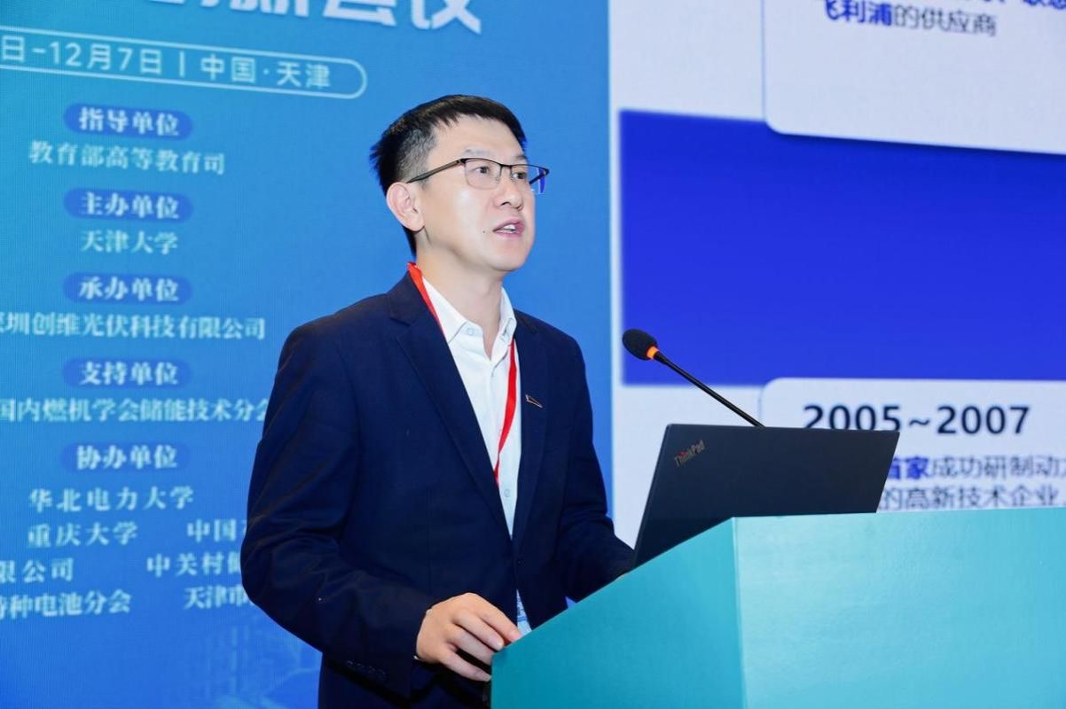 创维光伏集成事业部副总经理田浩在报告中分享了创维光伏储能业务布局、零碳园区建设实践及校企合作成果。他介绍,创维光伏聚焦储能系统集成与智能制造,依托航天级质量体系及国家级工业设计中心打造优质产品,业务覆盖27个国家,年储能目标3.8GWh。其安徽滁州零碳园区示范项目分两期建设,集成光伏、储能、绿色交通、虚拟电厂等模块,通过AI测算模型与智能能源管理系统,年发电量665万度,节省能耗成本80万元,运维成本降低40%。此外,创维光伏与天津大学共建“光储+”联合研究中心,合作研发EMS能源管理系统、微网仿真测算模型等核心产品,后续将深化双碳、智能电网等领域协同,助力储能产业高质量发展。
