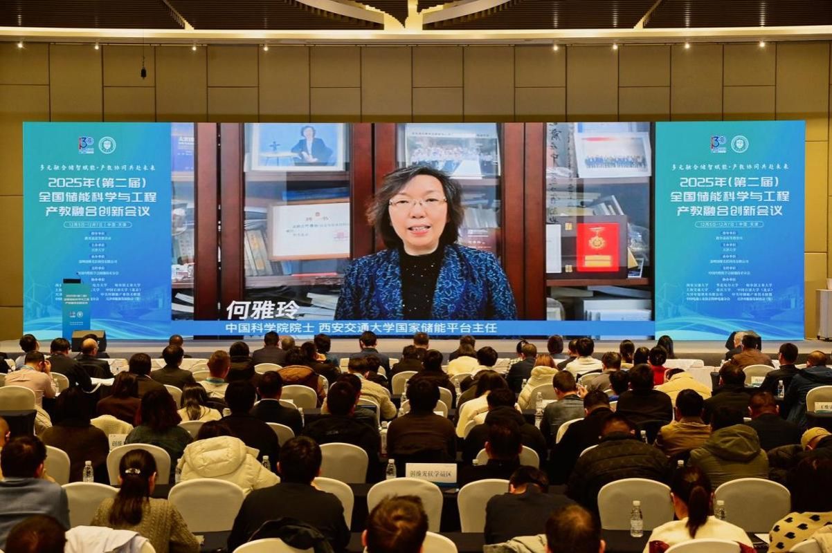 作为大会主席之一,西安交通大学国家储能平台主任何雅玲院士通过视频方式致辞。她提及大会是在教育部高等教育司指导下创办,旨在推动储能领域产教深度融合,建立校企协同创新常态化交流机制,拟定每年召开一次。何雅玲院士回顾,首届大会于2024年在西安交通大学成功举办,300余名产业界和教育界专家学者齐聚,共探储能领域人才培养、科学研究、成果转化及产业发展。她指出,本次第二届大会以“多元融合储智赋能,产教协同共赴未来”为主题,凝聚政、产、学、研、用、金多方力量,是储能领域深化产教融合、科教融汇的重要举措。她对天津大学及各协办单位为会议的付出表示认可,坚信在全体同仁努力下,大会将在新型储能技术、人才培养、产业发展等多维度碰撞出思想火花、取得丰硕成果。