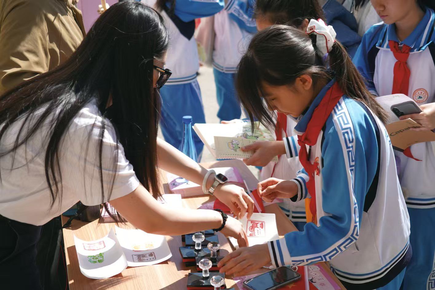 春水图书馆门前,“首屈一纸”折纸展、“纸鸢逐风 棠香满庭”风筝展尽显传统匠心之美;海棠季诵诗会以声传情,诵读经典;水彩画公开课用色彩描绘海棠盛景;黾园美术馆系列展陈,于丹青笔墨间映照艺术与人生的深沉交融;袁派评书、曾氏盘扣、景泰蓝花丝镶嵌技艺、簪花——多项非遗项目现场展示精湛技艺……一系列文化活动融合文化体验、美育浸润与知识服务,让公众在花香与书香中感受校园人文气息。