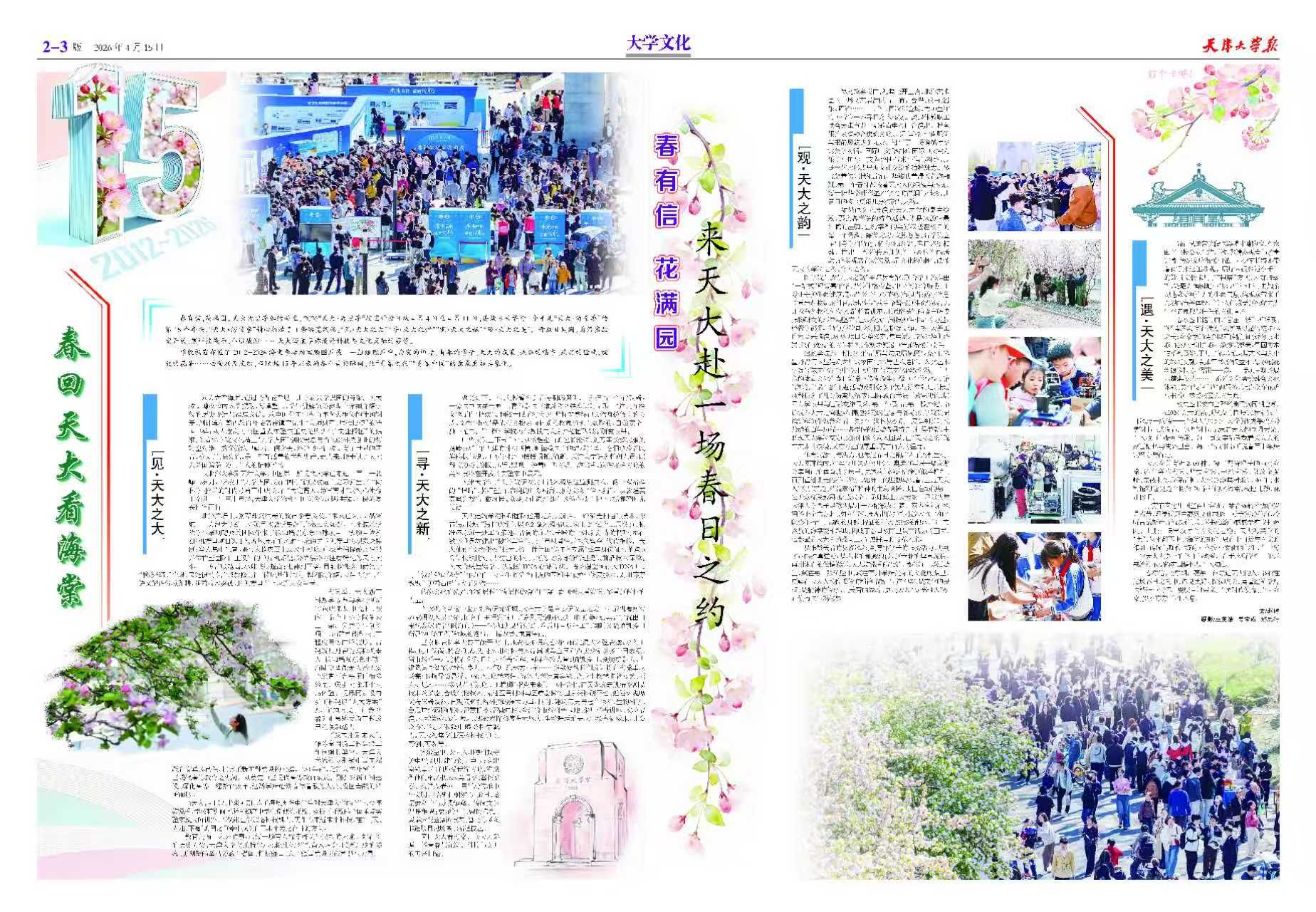 春有信,花有期。愿每一位走进天大的人,都能在这场春日之约中,遇见美好、收获成长,读懂这所学府的精神与情怀。赓续百卅荣光,不负时代使命,天大海棠,岁岁芬芳、生生不息。