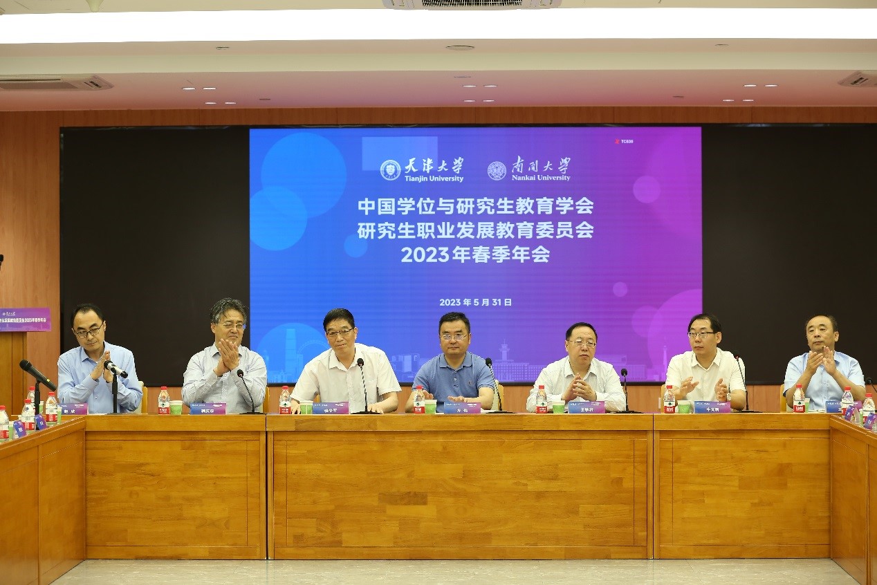 5月31日,中国学位与研究生教育学会研究生职业发展教育委员会2023年春季年会在天津大学、南开大学举行。教育部学生服务与素质发展中心副主任方伟、天津市政府教育督导室总督学王秋岩、天津市人力资源和社会保障局二级巡视员张少军、南开大学党委副书记牛文利、天津大学党委副书记韩庆华以及中国学位与研究生教育学会研究生职业发展教育委员会委员单位有关同志参加了会议。会议由天津大学党委学生工作部部长、学生处处长赵欣主持。