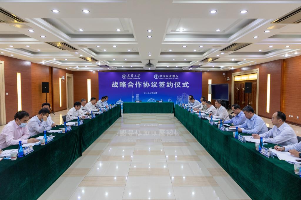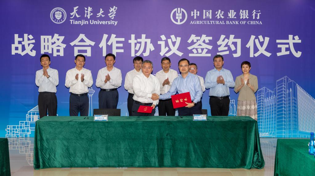 5月30日,天津大学与中国农业银行股份有限公司战略合作协议签约仪式在天津大学卫津路校区科图一层报告厅举行。会前,天津大学党委书记杨贤金与中国农业银行总行行长、党委副书记付万军一行会见,并一同参观了冯骥才文学艺术研究院。中国工程院院士、天津大学校长金东寒与付万军一行座谈并见证签约。中国农业银行总行副行长、党委委员刘加旺,天津大学党委常委、副校长郑刚代表双方签署战略合作协议。