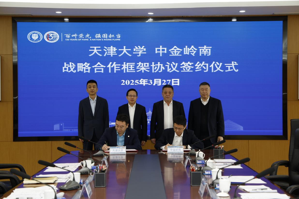 本站讯(合作办供稿 摄影于福旺)3月27日,天津大学与深圳市中金岭南有色金属股份有限公司(以下简称中金岭南)战略合作框架协议签约仪式在北洋园校区举行。中金岭南党委书记、董事长喻鸿,天津大学校长、中国工程院院士柴立元出席签约仪式并见证签约。中金岭南党委副书记、董事、工会主席郭磊,党委委员、副总裁郑金华,校党委常委、副校长王天友,总会计师、财务处处长张鹏参加签约仪式。会议由张鹏主持,王天友、郭磊代表双方签约。