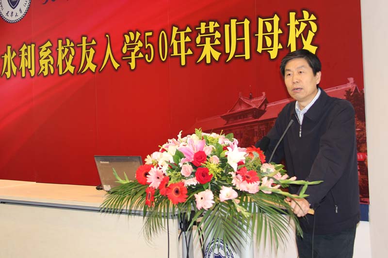 恩师的循循善诱、谆谆教诲,使校友们获益终生。活动中,大家为当年的授课老师敬献鲜花,百合、玫瑰、康乃馨,花朵带着优雅的芬芳,也承载着1962级水利系学子对师长教诲的感激和长寿的祝福。水利系老教授崔广涛作为教师代表发言,与大家畅叙情谊。