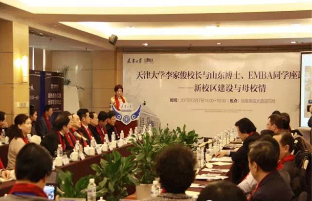 2月7日下午两点,李家俊校长与山东博士、EMBA同学举行座谈会。出席座谈会的还有天津大学校友与基金处处长李秀民、天津大学管理与经济学部副主任何桢、天津大学研究生院副院长赵美蓉、天津大学EMBA山东教育中心主任张少辉及天津大学山东班博士、EMBA班各班班委和同学代表。
