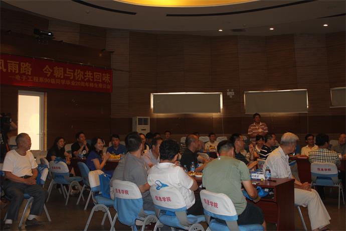 同学们心目中的辅导员郭继昌院长向回访的同学们介绍了学院20年来突飞猛进的发展以及电信学院在发展中遇到的机遇和挑战。随后,身为90级电信校友的杨欢书记代表学院、个人、新校区筹备委员对同学们的到来表示了热烈欢迎。校友们以接力的方式向老师汇报20年自己的情况,纷纷表示对母校、学院的感谢,对电信学院近年来取得的进步表示自豪。
