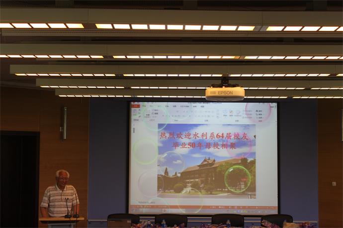 主持人说50周年聚会的如期举行离不开组织者的精心策划和协调。在热烈的掌声中,64届水建专业天津校友解绍玮同大家分享了本次活动筹划,组织的情况,随后又有两位校友分享了他们这么多年来对母校,对恩师,对同学的深厚情谊。