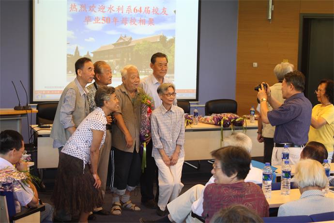 随后,为了表达学校对自己的培育之情,广大校友纷纷向母校赠送纪念品。众校友和老师以一曲《水利工程兵之歌》结束了上午的聚会。校友们在温馨的音乐中深情约定:毕业60周年再相聚!