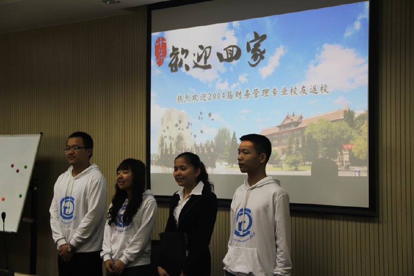 天津大学管理与经济学部2004届财务管理专业校友返校欢迎会,于2014年5月24日13时许在25楼A区三层A教室举行。管理与经济学部党委书记李连种、副书记施亮星,财务管理系副主任李胜楠,经管学部老师赵息、袁学民等出席了欢迎仪式。