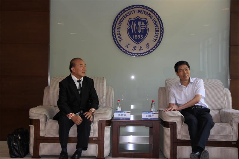 毛庭安将纪念中泰建交36周年的纪念书籍《泰中桥梁》赠送给母校,刘建平回赠天津大学纪念邮票册,并邀请他明年出席天津大学120周年校庆。