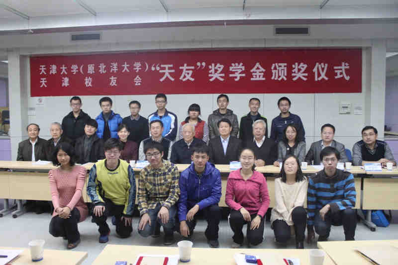 本站讯11月22日下午,天津大学天津校友会天友奖学金颁奖仪式在学校九楼三层会议室举行,天津校友会向2013年考入学校各学院的天津籍第一名考生颁发该奖学金。这是天津校友会改变评选规则后的首次颁奖,此前为奖励当年考入学校的总分前十名天津籍考生。