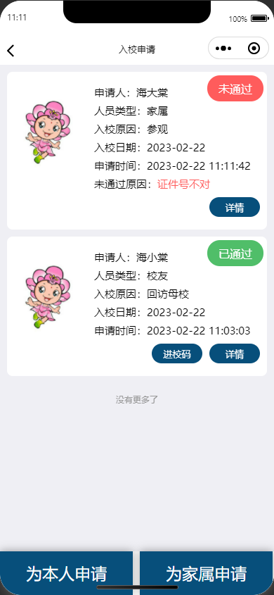 ②校友可选择为本人或家属申请进校,建议校友们至少提前一天申请