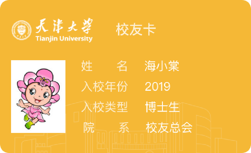 值此春回大地,万物复苏的时节,天津大学校友总会向各位校友、师生推出天津大学专属校友卡,并为有计划返校的校友们开通了一条专属进校通道,欢迎校友们回家。