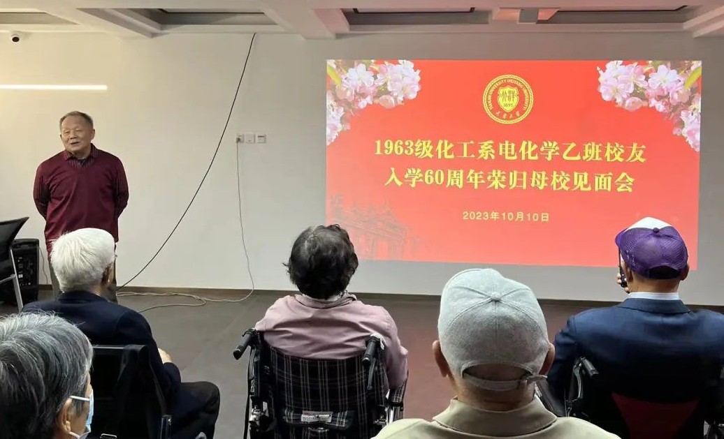 在重阳佳节即将到来之际,10月10日,15位1963级化工系电化学乙班校友相聚在母校,共同庆祝入学60周年。校友见面会在天津大学校友之家多功能厅举行,校友与基金事务处副处长谷钰、化工学院党委副书记李晶等参加活动。一别母校六十载,重逢依旧话深情,校友们虽已至耄耋之年,但相聚时刻依旧意气风发。大家温情聚首、亲切交谈,共叙同窗甲子情谊,共话母校美好未来