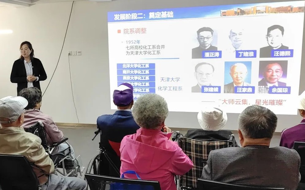 李晶代表化工学院对各位校友的返校表示热烈欢迎。她说,各位老校友虽已年过八十高龄但依旧心系母校发展、关心学院建设,这种精神,正是“天大品格”的优良传承。她从学院历史沿革、学科发展成果等方面向校友汇报了学院的最新发展建设情况。她希望各位校友继续关心支持母校,为学院发展积极建言献策,助力学院发展,更好指导新一代化工人成长成才。