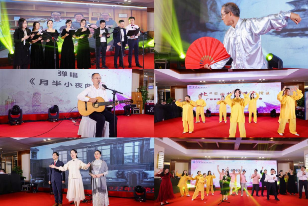 校友们为了本次的年会精心策划、编排节目,准备了合唱《梦里的珠江缓缓流》《灯火里的中国》,原创历史片短剧《岭南,我的岭南》《56式太极功夫扇》《太极八段锦》,吉他弹唱 《Dindi》、《月半小夜曲》、独唱《You Raise Me Up》,穿插在荣誉表彰、礼品抽奖、交流畅谈中,现场气氛热烈、情绪高涨,大家用饱满的热情向母校献礼,充分彰显校友的情谊。
