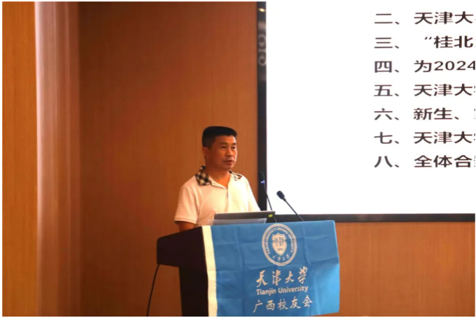 天津大学广西校友会会长龙其生对远道而来的校领导、嘉宾、校友及新生表示热烈欢迎,他回顾了校友会近年来的发展成就,强调了“桂北洋奖学金”在激励广西学子追求卓越、回馈社会方面的重要作用。龙会长鼓励在座的新生珍惜大学时光,努力学习,未来成为社会的栋梁之才。