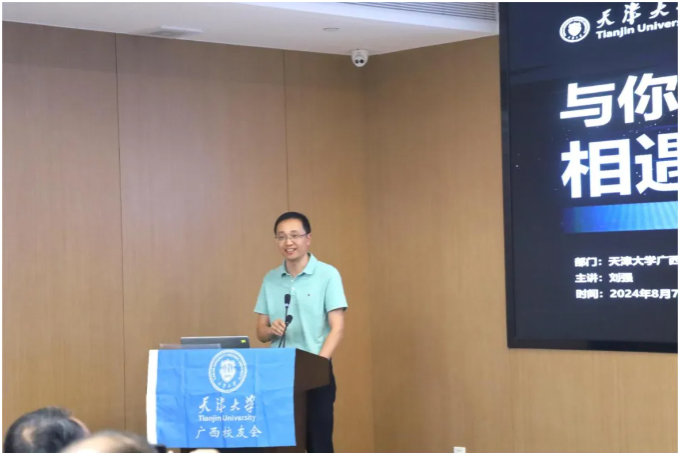 胡文平在活动上发表讲话,他向八桂大地的校友们和新生家长表示问候和感谢,同时热烈祝贺广西的83名新生成为天津大学的一员。他赞扬了天津大学广西校友会近年来取得的成绩以及“桂北洋奖学金”在促进校地合作、激励青年成长方面所做出的贡献,随后介绍了学校近期在人才培养、师资建设、学科建设、科研创新和国际化办学等方面取得的成就,并期待校友们能为母校130周年校庆建言献策,贡献力量,邀请大家届时回校团聚。最后,他祝愿广西校友会事业发展蒸蒸日上,校友和新生们前途灿烂。