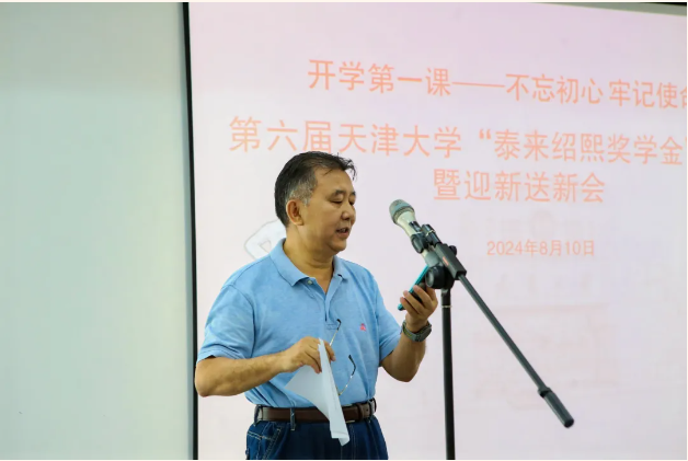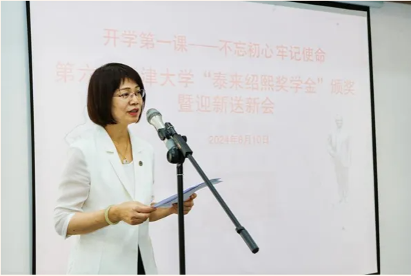 天津大学常州校友会名誉会长王荣泰在讲话中说,今天举行的是第六届天津大学“泰来绍熙奖学金”颁奖暨迎新送新会,从2019年8月举办首届颁奖会至今,已有59位常州新生获奖,共发放奖金29.5万元。从2022年起颁奖会增加了迎接来常州就业的天津大学应届毕业生的内容,当年就迎来了22位天大毕业生来常州入职,去年迎来了17位,今年又迎来了14位,三年共有53位应届毕业生入职常州政府部门及企事业单位工作,为常州高质量发展注入了新的活力。他表示,“泰来绍熙奖学金”的发放,不单单是一项物质层面的奖励,更是一种精神上的激励,从心灵的角度来讲,这也是一次铭记先烈、感恩先贤,传承张太雷革命精神与史绍熙科学家精神的深刻洗礼。