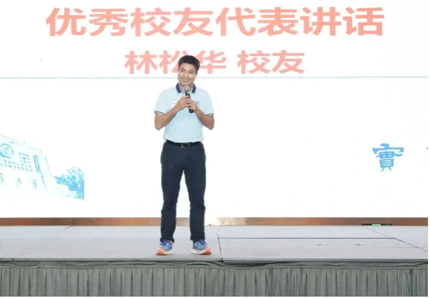 厦门校友会顾问、厦门盈趣科技董事长、厦门春水爱心基金会理事长林松华分享了自己的求学和工作经历,向新人们着重介绍锻炼沟通能力的"FLOATING"原则,鼓励大家在学好专业知识之余,要注重综合素质特别是沟通能力的培养。