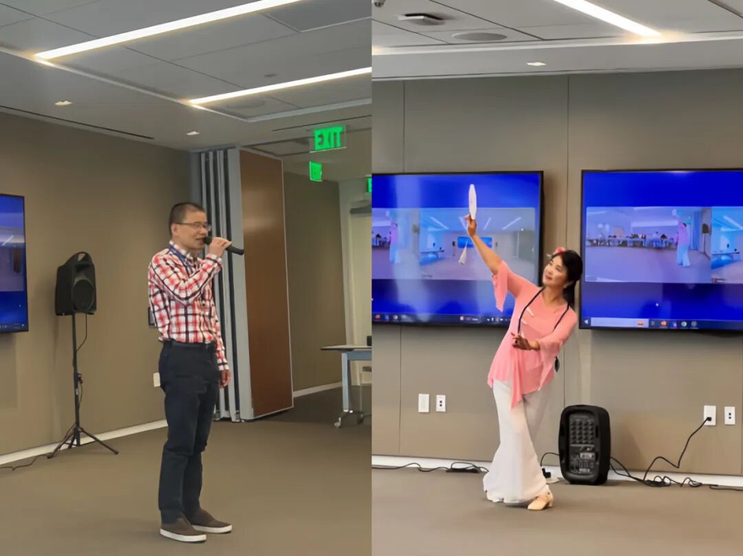 校友精彩的文艺表演展现了天大人在艺术领域风采。校友林兴央为大家献唱了经典歌曲《闪亮的日子》和《The Rose》,勾起了大家对校园时光的动情回忆;阚晶(Cathy)则以一支优美的舞蹈《但愿人长久》表达了大家在这金秋送爽之际的美好愿望。