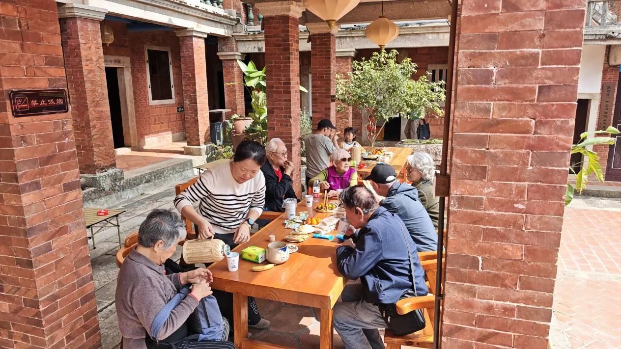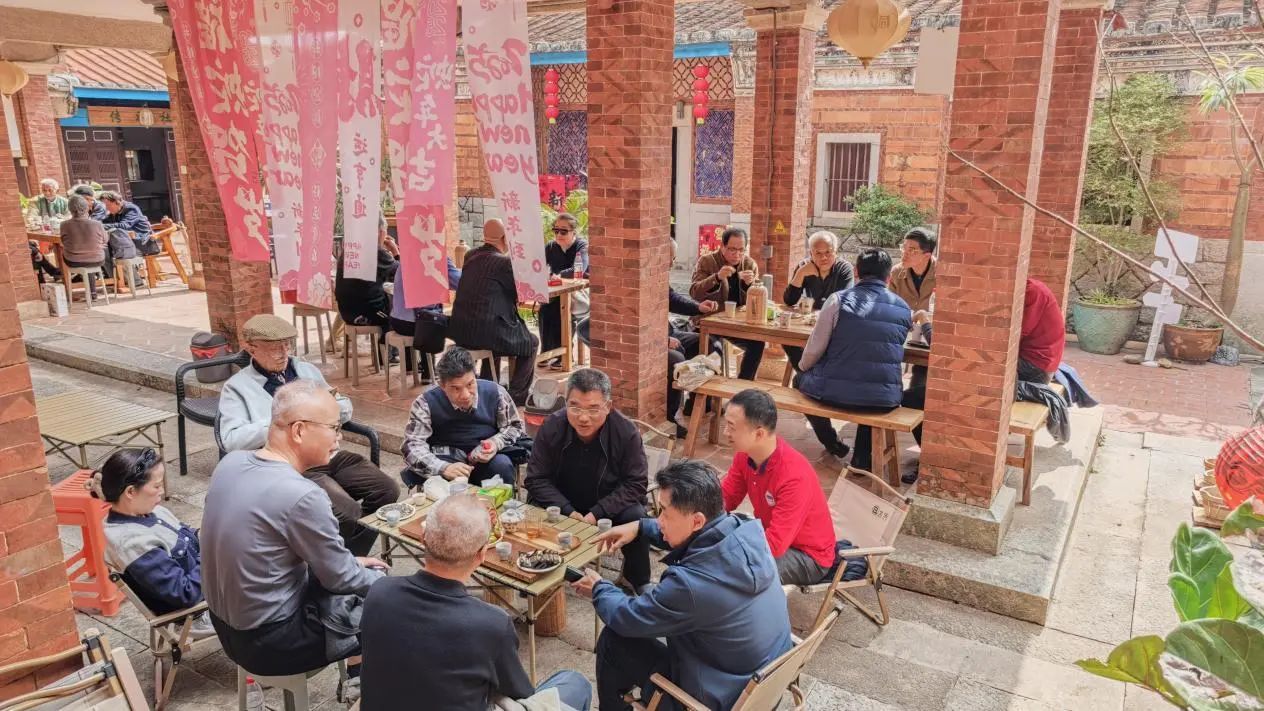 在结束了天亿未来生态城的参观后,老校友们来到了厦门市同安区区级文物保护单位——同字厝,一起泡茶聊天品尝美食,大家畅所欲言,分享着各自的生活经历与工作感悟,魏明会长向老校友们致以祝福与问候,在欢声笑语中结束本次团拜会。
